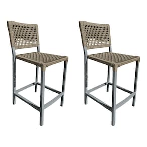 Kit 2 Banquetas França Em Corda Náutica E Base Em Alumínio Cinza Para área Gourmet Rami - Cor: Bege