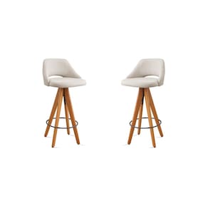 Kit 2 Banquetas Giratórias Estofadas com Encosto Nicole Nude - Bege