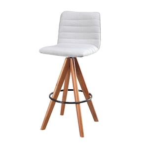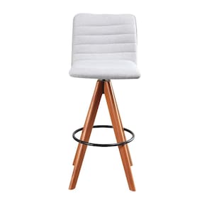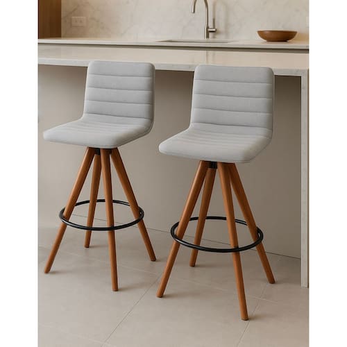 Kit 2 Banquetas Lucy Giratórias em Madeira Castanho com Linho Cor Alumínio – Exclusiva Linho Alumínio -
