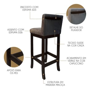 A Banqueta Média Melody é uma peça de destaque para qualquer ambiente, produzida em Madeira Maciça com acabamento em Verniz, garantindo durabilidade e elegância. Seu assento e encosto preenchidos com Espuma D26 e D23, respectivamente, oferecem o máximo conforto para refeições e momentos de descontração. Além disso, o revestimento em Tecido Suede confere um toque moderno e versátil. Seja na cozinha, sala de jantar ou espaço gourmet, essa banqueta é a escolha perfeita para agregar charme e funcionalidade ao lar! CARACTERÍSTICAS TÉCNICAS: - Produzido em Madeira Maciça; - Acabamento em Verniz na cor Capuccino; - Assento Preenchido com Espuma D26; - Encosto Preenchido com Espuma D23; - Revestimento em Tecido Suede na cor Cinza. *Indicada para Bancadas/Mesas com Alt. 90/95 cm. *PRODUTO ENVIADO MONTADO. INFORMAÇÕES TÉCNICAS: Altura Total: 90 Cm Altura até Assento: 65 Cm Altura até Travessa: 13 Cm Altura Encosto: 35 Cm Largura Assento: 38 Cm Largura Estrutura: 36 Cm Profundidade Total: 42 Cm Profundidade Assento: 41 Cm Peso: 7 kg *Kit Composto por 2 Unidades de Banquetas Média Melody. INFORMAÇÕES ADICIONAIS: ATENÇÃO: Móvel produzido em madeira maciça natural podendo ocorrer mudança no tom da madeira conforme o produto. *Conferir se o produto está de acordo com o que comprou, produto danificado não será aceito troca. **As imagens ambientadas são meramente ilustrativas e podem apresentar itens que não compõe o produto. As cores do produto podem variar de acordo com o monitor, a iluminação do ambiente ou sua percepção visual. ***Limpeza deve ser feita com pano macio e seco ou levemente umedecido com água e sabão neutro. Não devem ser utilizados produtos abrasivos. Garantia para defeitos de fabricação conforme Código de Defesa do Consumidor. Marca: Ccs Interiores