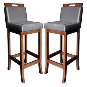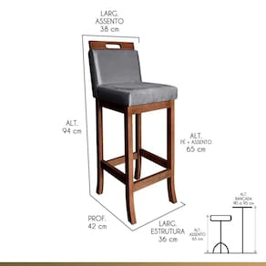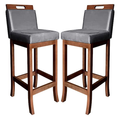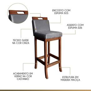 Kit 2 Banquetas Média para Cozinha Milão Madeira Castanho Suede Cinza CCS