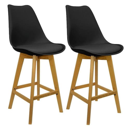 Kit 2 Banquetas Monty Leda Luisa Saarinen Alta Base Fixa Madeira - Preta Banqueta Monty Leda Base Madeira