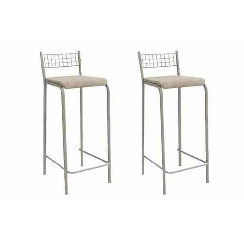 Banqueta Sala de Jantar Gênova 2B705NK Aço Kit 2 Un Niquel/Linho Bege Fendi - Kappesberg