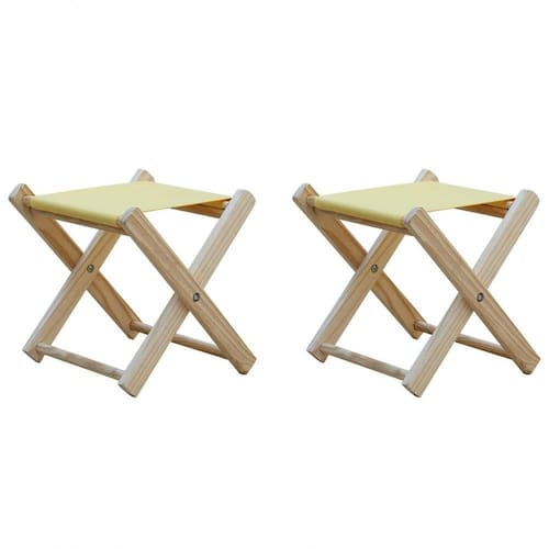Kit 2 Banquinho De Madeira Banqueta Pescador-amarelo