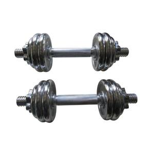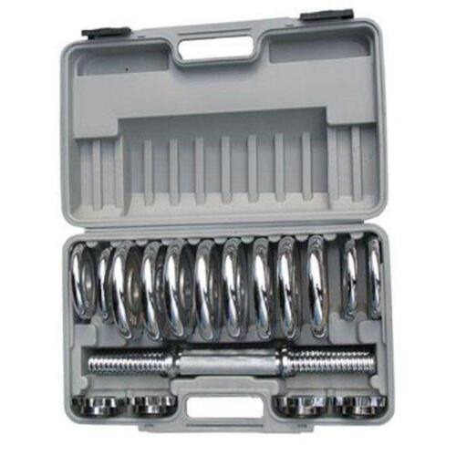Com o "Kit 2 Barras com Anilhas, Cromado 15kgs" é possível montar halteres com diferentes cargas, sendo ideal para trabalhar os membros superiores com vários tipos de treino.