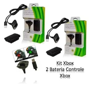 Kit 2 Bateria Para Controle Com Cabo E Carregador Xbox 360Bateria Para Controle Xbox 360 Com Cabo E Carregador Os jogadores podem jogar sem parar sem precisar trocar a bateria.Carregar e Jogar carrega durante o jogo ou quando o console está em stand-by (Quando estiver sendo carregado no Xbox 360)Recarregue O Seu Controle Enquanto Joga Elimine A Utilização De PilhasEspecificaçõesBateria Ni-Mh Recarregável.Tensão De Saída Da Bateria É De 2,7v.Tempo De Carga De 3 A 4 Horas.Características:Sempre pronto.Carregue enquanto joga e quando o console está em stand-by.Carrega em menos de 4 horas. ( Quando estiver sendo carregado no Xbox 360).O cabo USB se destina somente a recarga da bateria, não serve para conectar o controle para uso em PC.Tempo de uso: Uso contínuo de aproximadamente 2 a 3 horas por recarga completa - o tempo de uso pode variar conforme as configurações do usuário e o uso conjunto com outros acessórios. Instruções de uso:Primeira recarga padrão 8 horas.A recarga é feita conectando o cabo USB diretamente na porta USB da bateria.Uma ponta do cabo vai conectada à porta USB da bateria, a outra ponta vai conectada à porta USB do console.Deve observar com atenção a posição correta de conexão do cabo USB na porta USB da bateria para que a mesma não seja danificada ou quebrada devido ao uso excessivo de força ou conexão em posição incorreta - o conector USB da bateria é frágil e deve ser observada a força utilizada para o encaixe bem como a posição correta para a conexão precisa.Imagens IlustrativasContém:- 02 Bateria Para Controle Xbox 360 Com Cabo E Carregador