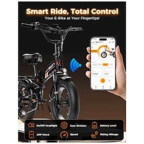 Recursos adicionais: Pneus 20 x 4, quadro dobrável, integração com aplicativo, freios hidráulicos, suspensão dupla, cestos, assento ajustável, guidão ajustável, farol, luz de freio e setas em cada bicicleta