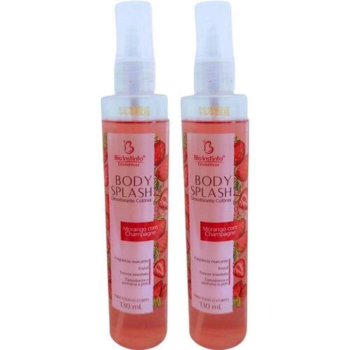 Kit 2 Body Splash Desodorante Colônia Morango 130ml Body Splash Morango com Champagne