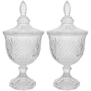 Kit 2 Bomboniere Potiche de Cristal Baleiro com Pé e Tampa Dublin Lyor Decorativo Transparente.