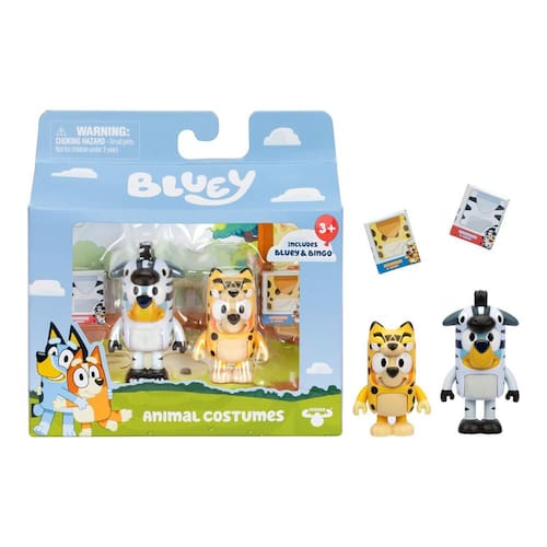 Leve a diversão de Bluey para casa com o Kit 2 Bonecos 6cm Bluey - Fantasia de Animal! Inspirado no episódio "Roupinhas", esse conjunto traz Bluey e Bingo vestidas com adoráveis macacões de fantasia de animais. Bluey está fantasiada de zebra, enquanto Bingo veste um macacão de chita, prontas para viver grandes aventuras.