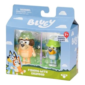 Reviva momentos especiais de Bluey com o Kit 2 Bonecos 6cm Bluey - Pescaria com Vovô! Inspirado no episódio Vovô, esse conjunto traz Bluey e seu avô prontos para um dia cheio de diversão. Os dois estão vestidos com chapéus de pescador e acompanham um acessório de vara de pesca que pode ser segurado por Bluey ou pelo Vovô, tornando a brincadeira ainda mais interativa.