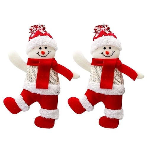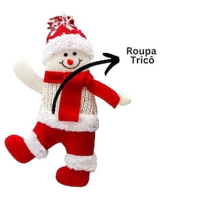 Conjunto 2 Bonecos de Neve Pendente Natalinos Pelúcia Candy Tricô 23cm Vermelho e Branco