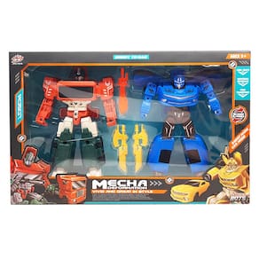 Diversão em dobro com o Robot Car 2 em 1, com o carrinho que vira robô além de se divertir a toda velocidade, em questão de segundos ele se transforma em um mega robô para a brincadeira ficar ainda mais radical. Bonecos articulados, o robô laranja se transforma em Caminhão Truck, e o azul em carro esportivo. Possui 3 acessórios (espadas).