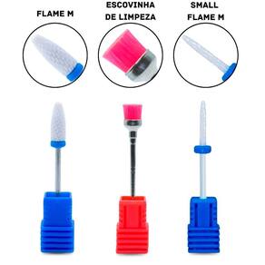 -small Flame M: Broca de gramatura de corte mediano é indicada para realizar pequenos cortes e acabamentos nas proximidades das cutículas das unhas;
