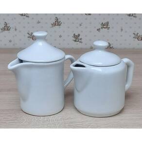 Kit 2 Bules Café, Chá, Leite 300 e 380ml - Porcelana Branca