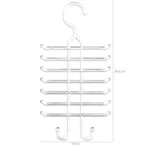 Os cabides são suportes organizadores projetados especificamente para guardar e exibir gravatas e cintos de forma prática e organizada em guarda-roupas, armários ou closets. Esses cabides são feitos de material resistente, que proporciona uma aparência elegante e contemporânea, permitindo que você veja facilmente todas as suas gravatas em um único lugar. Cada cabide para gravatas possui 16 ganchos dispostos de maneira ordenada, nos quais as gravatas podem ser penduradas individualmente. Com os portas gravatas e cintos cristal, você pode cuidar melhor das suas gravatas, evitando vincos, rugas e danos, prolongando sua vida útil e deixando seu ambiente mais harmônico e organizado.