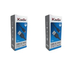 Kit 2 Cabos USB V8 Kingo Preto 2 metros 2.1A para Moto E6 Plus É super resistente, este cabo USB 2.0 conecta seu dispositivo diretamente a seu computador para sincronizar de forma rápida e eficiente seus dados ou carregar seu aparelho. Conecte-se ao computador para sincronização e transferência de dados.