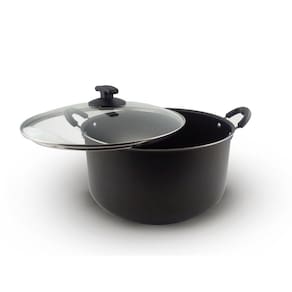 Características A Caçarola Grande Família é feita de alumínio reforçado, conferindo maior resistência ao produto. Conta com revestimento interno e externo de 5 camadas de antiaderente. A tampa de vidro possui furo para a liberação de vapor. As alças e o pomel são fabricados em baquelite antitérmico. Essa caçarola está disponível em 4 tamanhos diferentes.