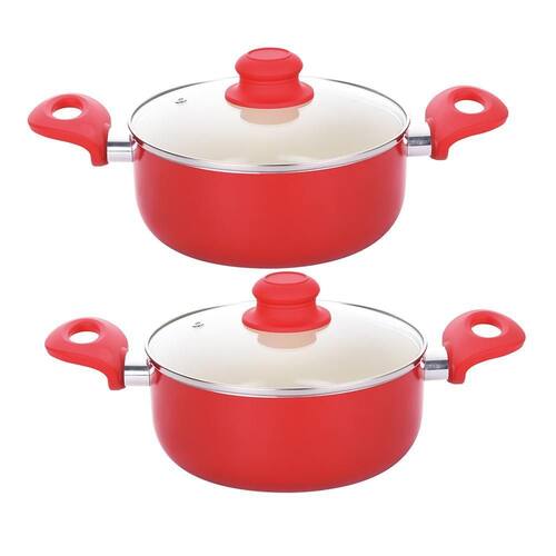 Ficha Técnica: Caçarola 22cm - Altura: 9cm - Diâmetro: 22cm - Comprimento com cabo: 37cm - Espessura: 1.8 mm - Material: Alumínio com revestimento cerâmico - Marca: Class Home - Cor: Vermelho - Conteúdo: 2 peças
