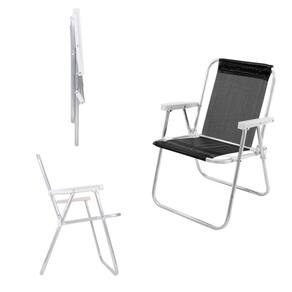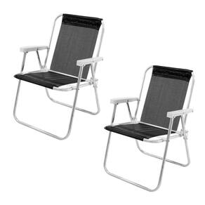 Kit 2 Cadeira de Praia Alta Alumínio Sannet Lazy Preta