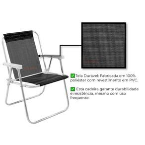 Tela Durável: Fabricada em 100% poliéster com revestimento em PVC, esta cadeira garante durabilidade e resistência, mesmo com uso frequente