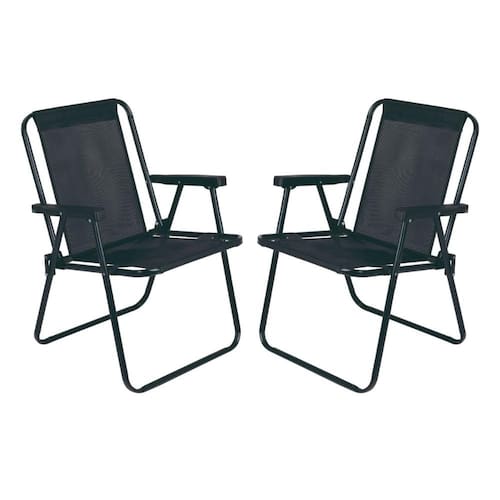 Kit 2 Cadeira de Praia Alta em Aço 110 kg Preta Mor