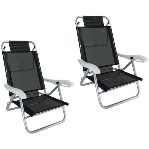 Material do assento: Tela PVC | Materiais da estrutura: Alumínio | Marca: Zaka | Condição do item: Novo | Tipo de produto: Cadeira de praia | Altura: 86 cm | Fonte do produto: Nacional | Largura: 62 cm | Quantidade de posições: 5 | Modelo: Banho de Sol | Comprimento: 71 cm | É kit: Sim | Peso máximo suportado: 120 kg | É dobrável: Sim | SKU: ZAK5KIT2 | Cor: Preto | Cor principal: Preto | Código universal de produto: 7898566801352 | MPN: 7898566801352 | Com apoio de braços: Sim | Material do apoio de braços: Plástico | Tipo de cadeira: Cadeira de praia