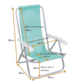 Medidas da cadeira aberta: (A x L x C) 85 cm x 54 cm x 58 cm