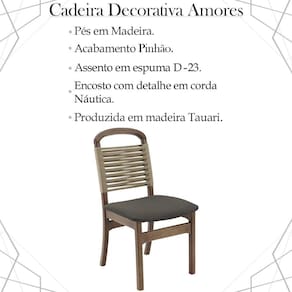 Kit 2 Cadeira Decorativa Vinil Corda Náutica Nude Pés Madeira Pinhão, traz o conforto que você merece, levando muito mais harmonia e leveza para seus espaços. Estrutura produzida com madeira de tauari proporcionando maior durabilidade e resistência à peça. Compostas por pés em madeira com acabamento em pinhão, encosto com detalhe em corda náutica trançado a mão, assento em espuma D-23. Suportando até 120 kg cada. Possui design inovador, proporcionando graciosidade e elegância em seus ambientes, ideal para compor sua sala de jantar, sala de estar e cozinha. Este móvel chegará em sua casa separado em 02 volumes.