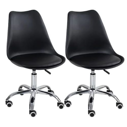 Kit 2 Cadeira Home Office Leda Giratória, Assento em Polipropileno com Almofada, Base Cromada com Rodízios, Regulagem de Altura,Preto - Preto
