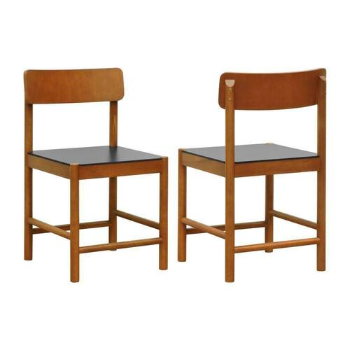 Kit 2 Cadeiras Amber Madeira Maciça - Amêndoa Assento Mdf Bp Na Cor Preta