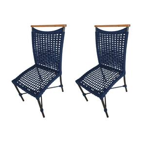 Kit 2 Cadeiras Anne Corda Náutica Detalhe Em Madeira Base Alumínio Preto/azul Marinho - Cor: Azul