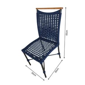 Kit 2 Cadeiras Anne Corda Náutica Detalhe Em Madeira Base Alumínio Preto-azul Marinho - Cor: Azul