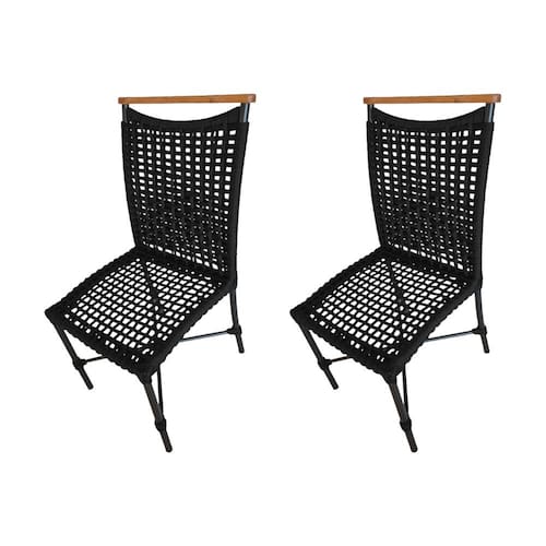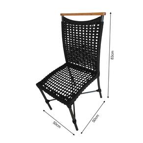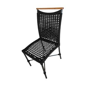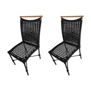 Kit 2 Cadeiras Anne Corda Náutica Detalhe em Madeira Base Alumínio Preto/preto - Preto