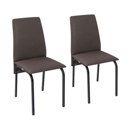Kit 2 Cadeiras Barcelona Tubo Assento Linho Preto/Marrom