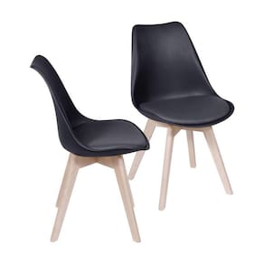 Conteúdo: kit 02 Cadeiras Boxbit Joly Saarinen Polipropileno Preta e Almofada em P.U. Base Madeira