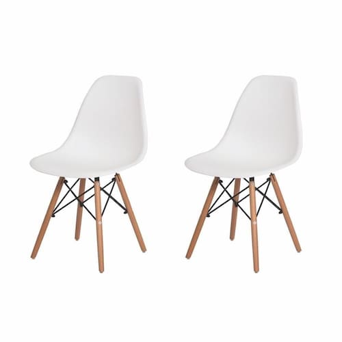 Kit 2 Cadeiras Para Mesa De Jantar Com Encosto Cozinha Sala Escrivianinha Penteadeira Charles Eames Eiffel Preta Base Madeira Wood