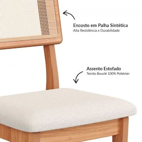 Características: Estrutura 100% MDF Acabamento em Pintura UV Fosca Encosto em Palha Sintética Assento Estofado