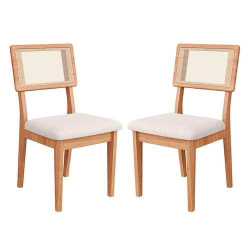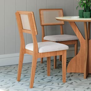 Apresentamos nosso elegante conjunto com 2 cadeiras, fabricada em 100% MDF com acabamento em pintura UV fosca. Seus diferenciais incluem assento estofado para conforto superior e encosto em tela para um toque moderno. Suporta até 120 Kg cada uma, garantindo durabilidade e robustez. Ideal para ambientes diversos, esta cadeira combina estilo e funcionalidade em um design premium! CARACTERÍSTICAS TÉCNICAS: - Produzido em 100% MDF; - Acabamento Pintura em UV Fosca Freijó; - Assento com Espuma D28; - Encosto com Tela Sintética; - Tecido em Poliéster e Algodão na Cor Bege; - Suporta até 120 Kg. *CADEIRAS IRÃO DESMONTADA EM CAIXAS, ACOMPANHADO DE TODAS AS PEÇAS, FERRAGENS E MANUAIS PARA MONTAGEM. DIMENSÕES: Altura: 90 cm Altura até o Assento: 48 Cm Largura: 48 cm Profundidade Total: 56 cm Profundidade do Assento: 43 Cm Peso: 7 kg INFORMAÇÕES ADICIONAIS: - ATENÇÃO: Não trabalhamos e não nos responsabilizamos pela montagem do móvel. Antes da montagem conferir se o produto está de acordo com o que comprou, produto montado e danificado pela montagem não será aceito troca. Montagem e instalação por conta do comprador. - As imagens ambientadas são meramente ilustrativas e podem apresentar itens que não compõe o produto. As cores do produto podem variar de acordo com o monitor, a iluminação do ambiente ou sua percepção visual. - Limpeza: Deve ser feita com pano macio e seco ou levemente umedecido com água e sabão neutro. Não devem ser utilizados abrasivos como palha de aço e objetos cortantes. Garantia para defeitos de fabricação conforme Código de Defesa do Consumidor.