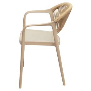 Seu encosto em barbantes de ratan sintético acrescenta um charme artesanal ao design, trazendo leveza visual e elegância para a composição do ambiente. O modelo também conta com braços que proporcionam maior conforto, sendo uma excelente opção tanto para residências quanto para espaços comerciais. Com L 56 cm X P 49 cm X A 81 cm, a cadeira Juna combina resistência, versatilidade e design contemporâneo, valorizando qualquer espaço externo com sofisticação e personalidade.