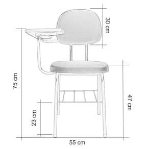 Descrição para cada Cadeira: • Assento e Encosto estofado em espuma Injetada; • Capacidade de Peso de até 110 kg por lugar; • Pintura Epóxi; • Tecido J. Serrano; • Prancheta em MDP; • Porta-livros metálico;