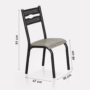 As cadeiras Luna Ciplafe possuem um design moderno e anatômico. São produzidas em aço carbono, com revestimento em courino sintético e pintura com tinta epóxi-pó deixando o produto com maior resistência e maior proteção contra corrosão e ferrugem. Acabamento da Estrutura: Pintura Almofada do assento: Removível Altura do assento até o chão: 46 cm Ambiente Principal: Cozinha Apoio para Braços Estofado: Complexidade da Montagem: Baixa: pode ser montado por uma pessoa sozinha Cor: Preto/Junco Manteiga Cor do Produto: Preto/Junco Manteiga Dobrável: Enchimento do Assento: Espuma D-12 Enchimento do Encosto: Escala de Brilho: Fosco Estrutura do Assento: Madeira Estrutura do Encosto: Aço Giratória: Informações Complementares: Itens Inclusos: 2 Cadeiras, Kit Ferragens e Manual de Montagem Linha ou Coleção: Clássica Manual de Especificação Técnica: Manual de Montagem e Instalação: https://cdn2.madeiramadeira.com.br/atributo/moveis-ciplafe/1028351-130005-folh-cad-282-284-288-297-fev-2022.pdf Material da Base: Necessita Montagem: Sim Origem do Produto: Nacional Peso: 3.8 Possui Apoio para Braços: Possui Apoio Para os Pés: Possui Rodízio: Não Recomendações de Uso, Manutenção e Limpeza: Limpar com pano levemente umedecido. Não usar produtos abrasivos que possam danificar a superfície do móvel. Revestimento do Assento: Couro Sintético Revestimento do Encosto: Rodízio com Trava: Sistema de Montagem: Parafuso Suporta Até (kg): 100 Tipo de Assento: Fixo Tipo de Encosto: Regulável Tipo de Madeira Maciça: