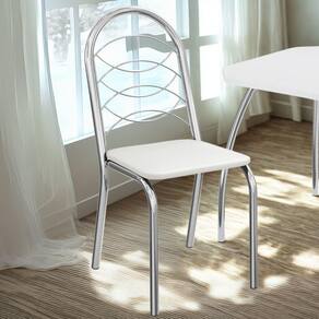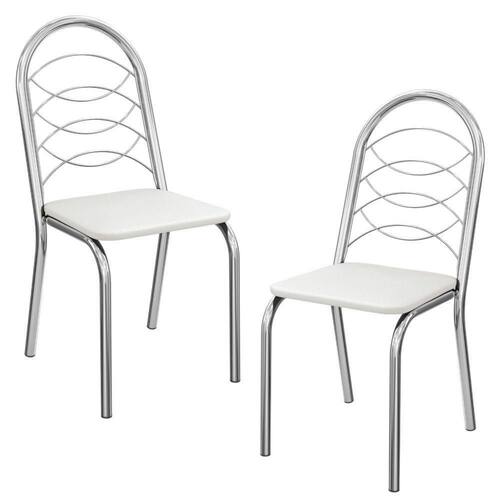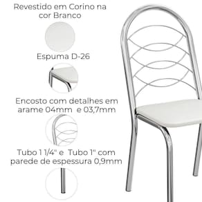 Conjunto 2 cadeiras 2C009, ideais para salas de jantar ou recepções. Estrutura em MDP (15 mm), corpo/pés tubular em alumínio (Tubo 1 1/4 com parede de espessura 0,9mm / Tubo 1 com parede de espessura 0,9mm), encosto com detalhes em arame 0,4mm e 03,7mm. Estofadas com espuma D26 e revestidas em Corino (material sintético que imita couro), além de sapatas para proteção ao piso. Este produto será entregue em 01 volume.