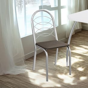 Conjunto 2 cadeiras 2C009, ideais para salas de jantar ou recepções. Estrutura em MDP (15 mm), corpo/pés tubular em alumínio (Tubo 1 1/4 com parede de espessura 0,9mm / Tubo 1 com parede de espessura 0,9mm), encosto com detalhes em arame 0,4mm e 03,7mm. Estofadas com espuma D26 e revestidas em Corino (material sintético que imita couro), além de sapatas para proteção ao piso. Este produto será entregue em 01 volume.