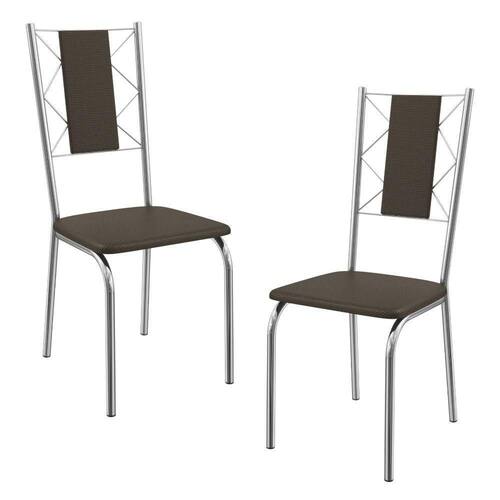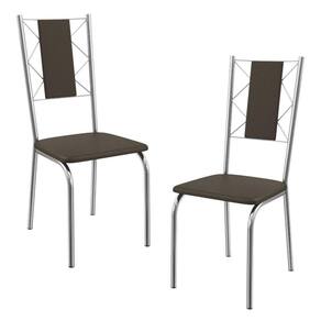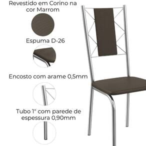 Conjunto 2 cadeiras 2C076, ideais para salas de jantar ou recepções. Estrutura em MDP (15 mm), corpo/ pés tubular em alumínio (Tubo 1 com parede de espessura 0,90mm), encosto com detalhes em arame 0,5mm. Estofadas com espuma D26 e revestido em Corino (material sintético que imita couro), além de sapatas para proteção ao piso. Este produto será entregue em 01 volume.
