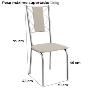 Conjunto 2 cadeiras 2C076, ideais para salas de jantar ou recepções. Estrutura em MDP (15 mm), corpo/ pés tubular em alumínio (Tubo 1 com parede de espessura 0,90mm), encosto com detalhes em arame 0,5mm. Estofadas com espuma D26 e revestido em Corino (material sintético que imita couro), além de sapatas para proteção ao piso. Este produto será entregue em 01 volume.