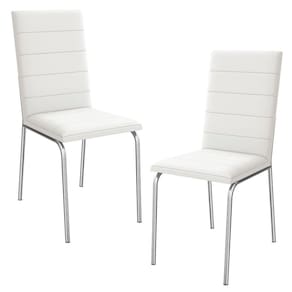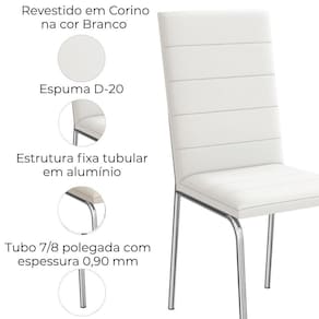 Conjunto 2 cadeiras 2C091, ideais para salas de jantar ou recepções. Estrutura em MDP (15 mm), base/ pés tubular em alumínio (tubo 7/8 polegada com espessura 0,90 mm). Estofadas com espuma D20 e revestido em Corino (material sintético que imita couro) garantindo conforto, durabilidade e fácil limpeza. Possui sapatas para proteção ao piso. Este produto será entregue em 01 volume.