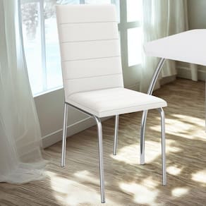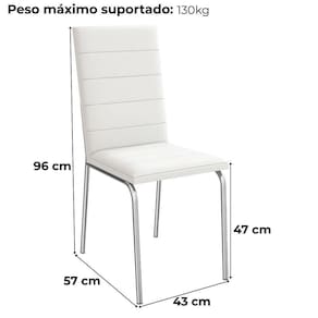 Conjunto 2 cadeiras 2C091, ideais para salas de jantar ou recepções. Estrutura em MDP (15 mm), base/ pés tubular em alumínio (tubo 7/8 polegada com espessura 0,90 mm). Estofadas com espuma D20 e revestido em Corino (material sintético que imita couro) garantindo conforto, durabilidade e fácil limpeza. Possui sapatas para proteção ao piso. Este produto será entregue em 01 volume.