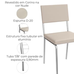Conjunto 2 cadeiras 2C128, ideais para salas de jantar ou recepções. Estrutura em MDP (15 mm), corpo/pés tubular em alumínio (Tubo 7/8 com parede de espessura 0,90mm). Estofadas com espuma D20 e revestidas em Corino (material sintético que imita couro), além de sapatas para proteção ao piso. Este produto será entregue em 01 volume.