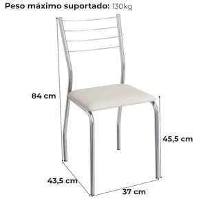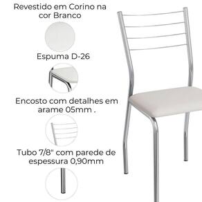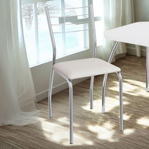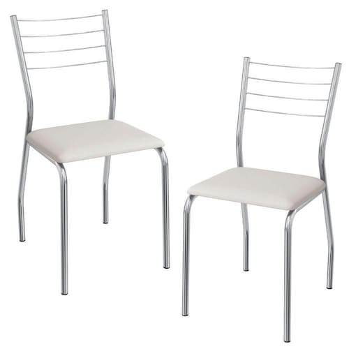 Conjunto 2 cadeiras 2C140, ideais para salas de jantar ou recepções. Estrutura em MDP (15 mm), corpo/ pés tubular em alumínio (Tubo 7/8 com parede de espessura 0,90mm), encosto com detalhes em arame 0,5mm. Estofadas com espuma D26 e revestido em Corino (material sintético que imita couro), além de sapatas para proteção ao piso. Este produto será entregue em 01 volume.